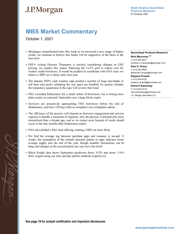 【J.P. Morgan】【20211001】J.P. 摩根-美股投资策略-证券化产品研究:抵押支持债券市场评论-21页