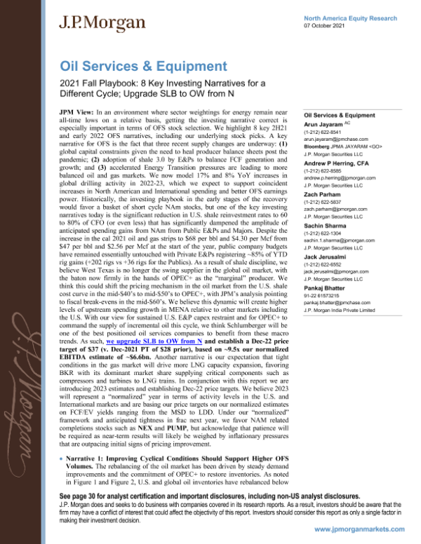 【J.P. Morgan】【20211007】美股油服与设备行业-不同周期的8个关键投资叙事-37页