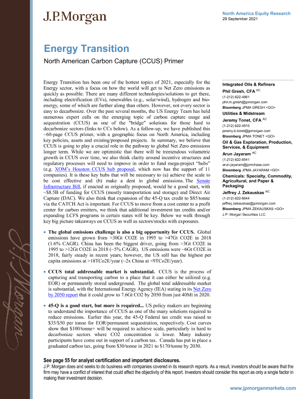 【J.P. Morgan】【20210929】能源过渡:北美碳捕获入门-59页