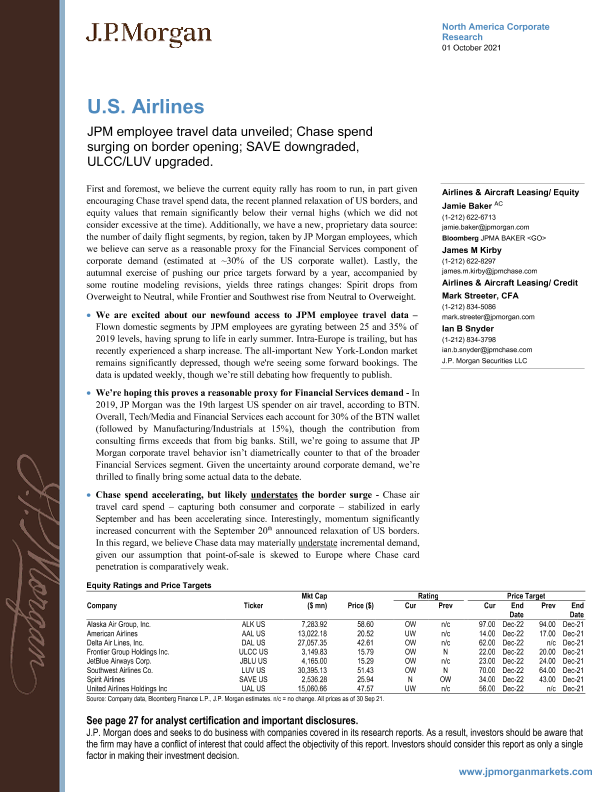 【J.P. Morgan】【20211001】美股航空业-摩根大通公布员工出行数据;追逐在边境开放上激增的支出-31页