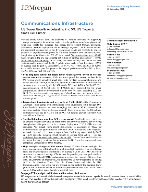 【J.P. Morgan】【20210930】US Tower Growth Accelerating into 5G US Tower & Small Cell Primer-103页