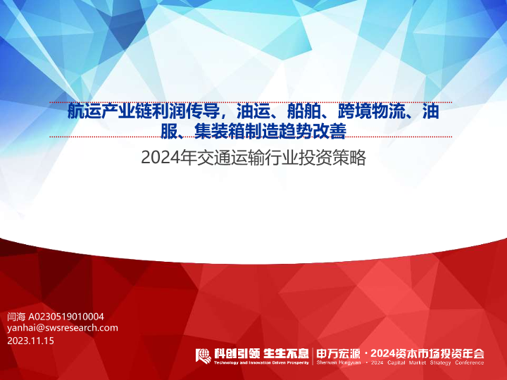 【申万宏源】【20231115】2024年交通运输行业投资策略:航运产业链利润传导,油运、船舶、跨境物流、油服、集装箱制造趋势改善-50页