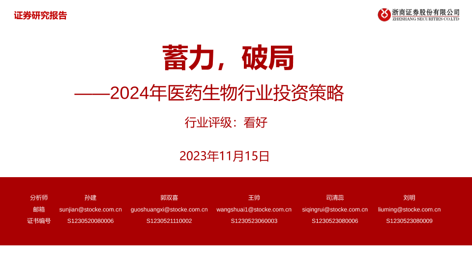 【浙商证券】【20231115】2024年医药生物行业投资策略:蓄力,破局-57页