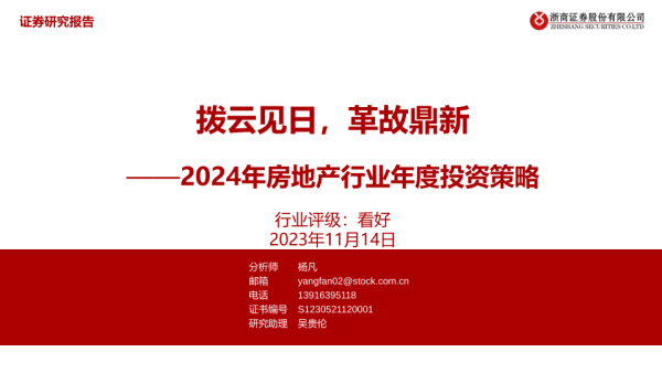【浙商证券】【20231114】2024年房地产行业年度投资策略:拨云见日,革故鼎新-43页