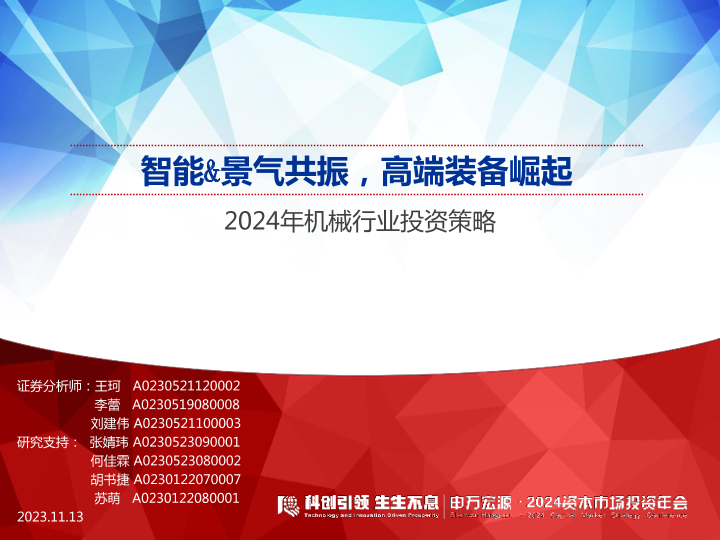 【申万宏源】【20231113】2024年机械行业投资策略:智能&景气共振,高端装备崛起-36页