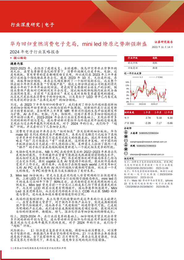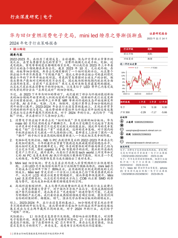 【西部证券】【20231114】2024年电子行业策略报告:华为回归重燃消费电子竞局,mini led燎原之势渐强渐盛-56页