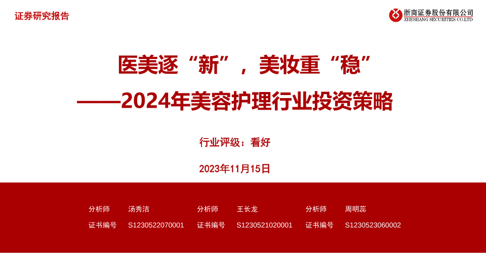 【浙商证券】【20231115】2024年美容护理行业投资策略:医美逐“新”,美妆重“稳”-36页