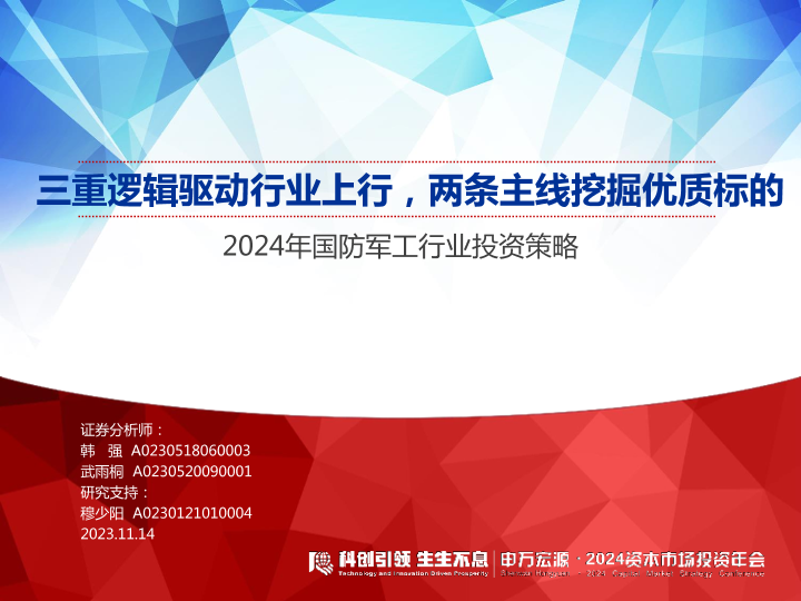 【申万宏源】【20231114】2024年国防军工行业投资策略:三重逻辑驱动行业上行,两条主线挖掘优质标的-56页