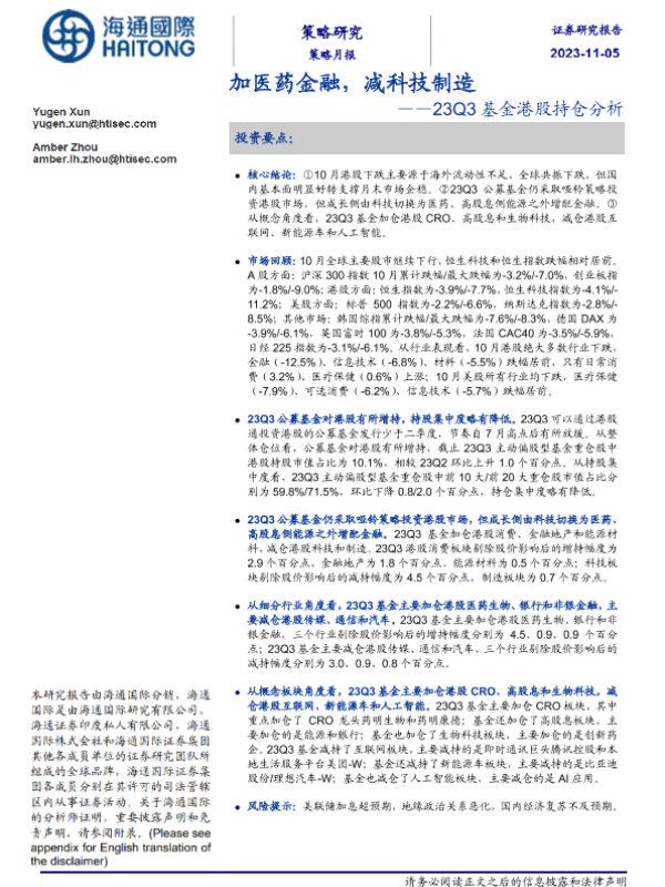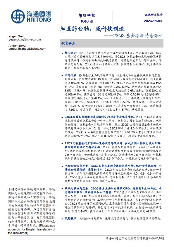 【海通国际】【20231105】23Q3基金港股持仓分析:加医药金融,减科技制造-17页