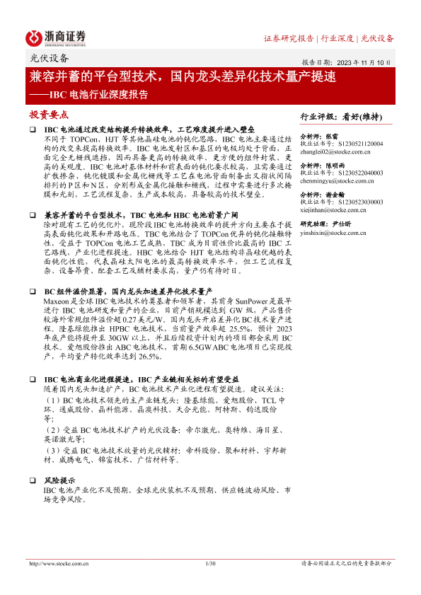 【浙商证券】【20231110】IBC电池行业深度报告:兼容并蓄的平台型技术,国内龙头差异化技术量产提速-30页
