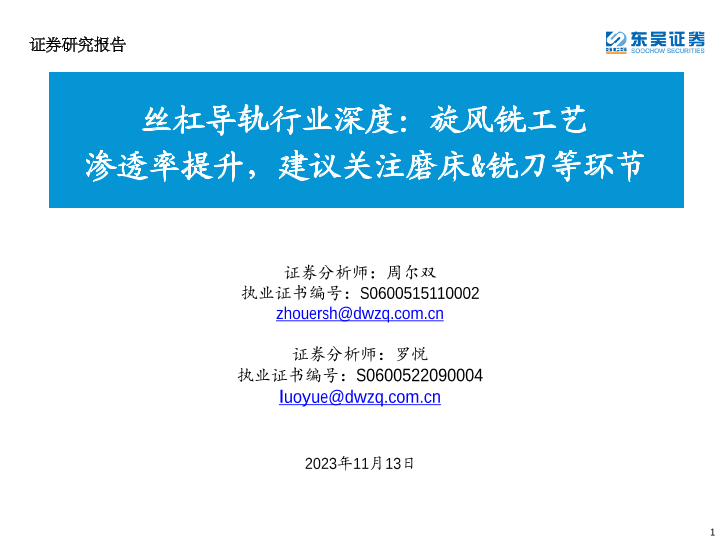 【东吴证券】【20231113】丝杠导轨行业深度:旋风铣工艺渗透率提升,建议关注磨床&铣刀等环节-39页