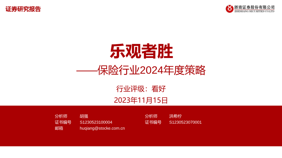 【浙商证券】【20231115】保险行业2024年度策略:乐观者胜-26页