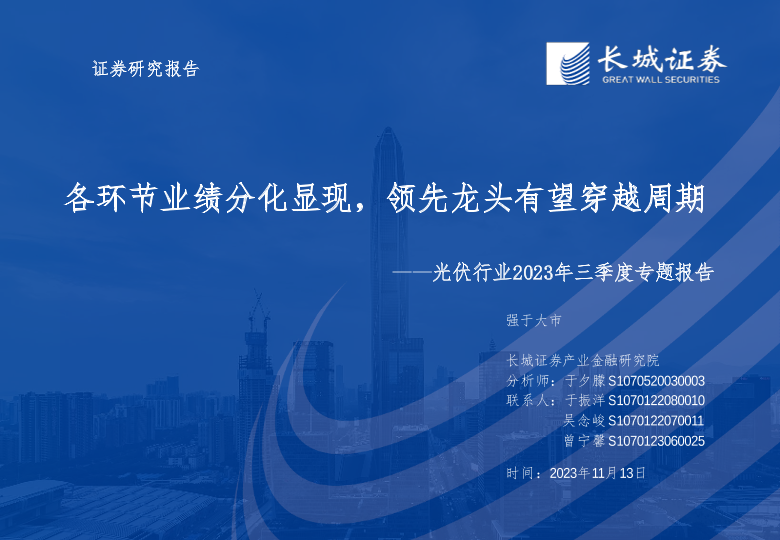 【长城证券】【20231113】光伏行业2023年三季度专题报告:各环节业绩分化显现,领先龙头有望穿越周期-45页