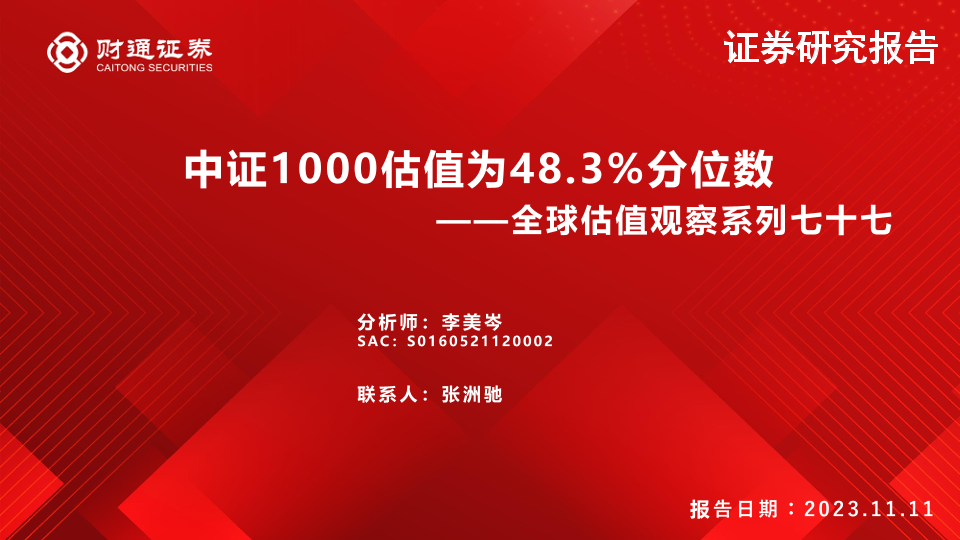 【财通证券】【20231111】全球估值观察系列七十七:中证1000估值为48.3%分位数-29页