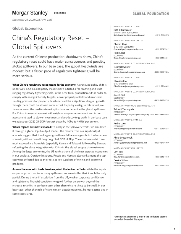 【Morgan Stanley】【20210929】中国的监管重置:全球溢出效应-27页