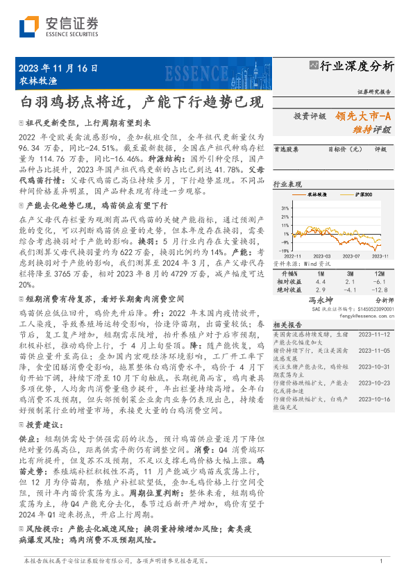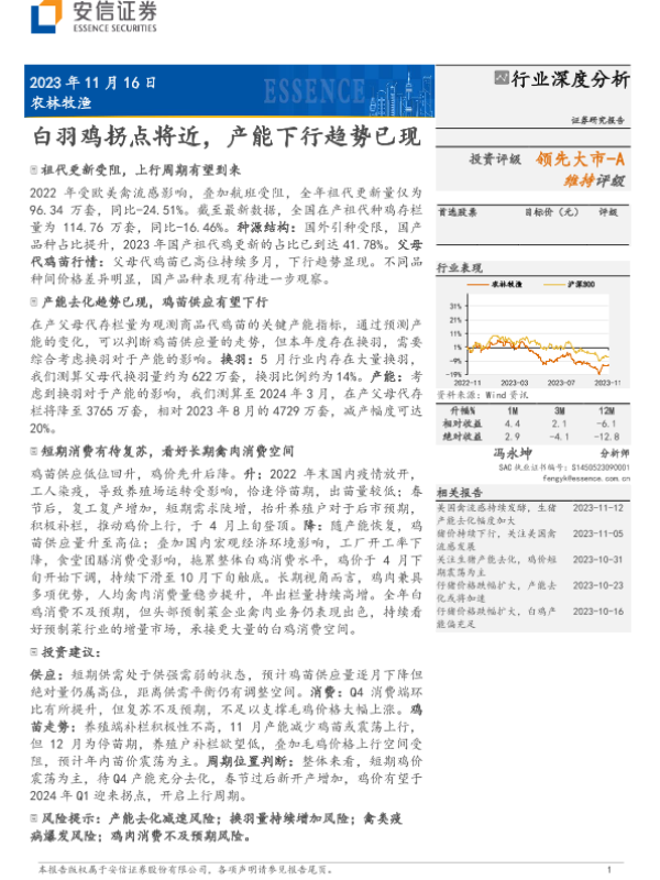 【安信证券】【20231116】农林牧渔行业深度分析:白羽鸡拐点将近,产能下行趋势已现-21页