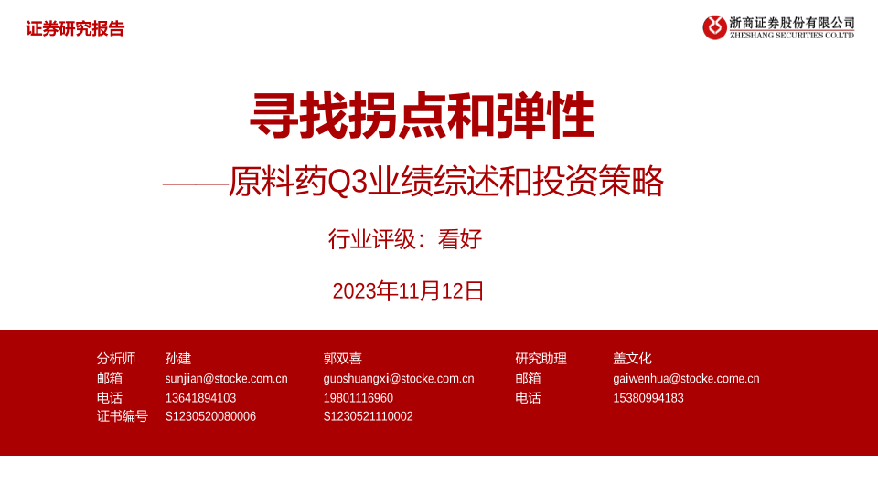 【浙商证券】【20231112】医药生物行业原料药Q3业绩综述和投资策略:寻找拐点和弹性-22页