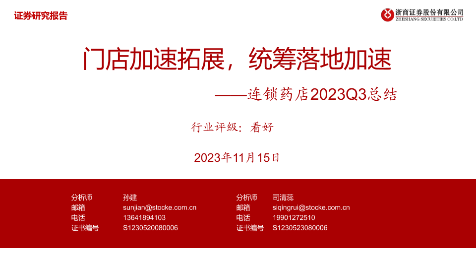【浙商证券】【20231115】医药行业连锁药店2023Q3总结:门店加速拓展,统筹落地加速-24页