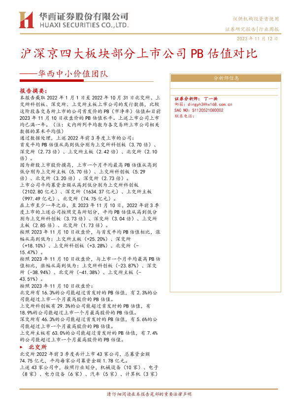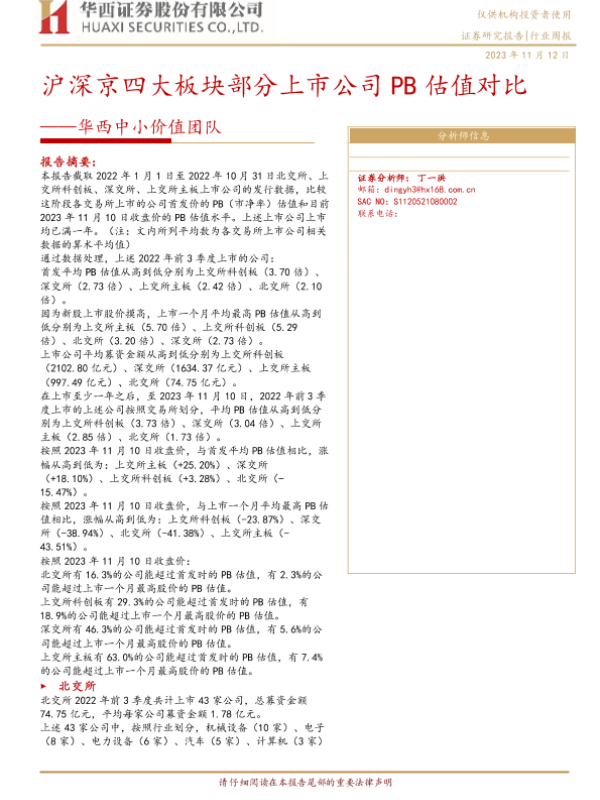 【华西证券】【20231112】华西中小价值团队:沪深京四大板块部分上市公司PB估值对比-25页