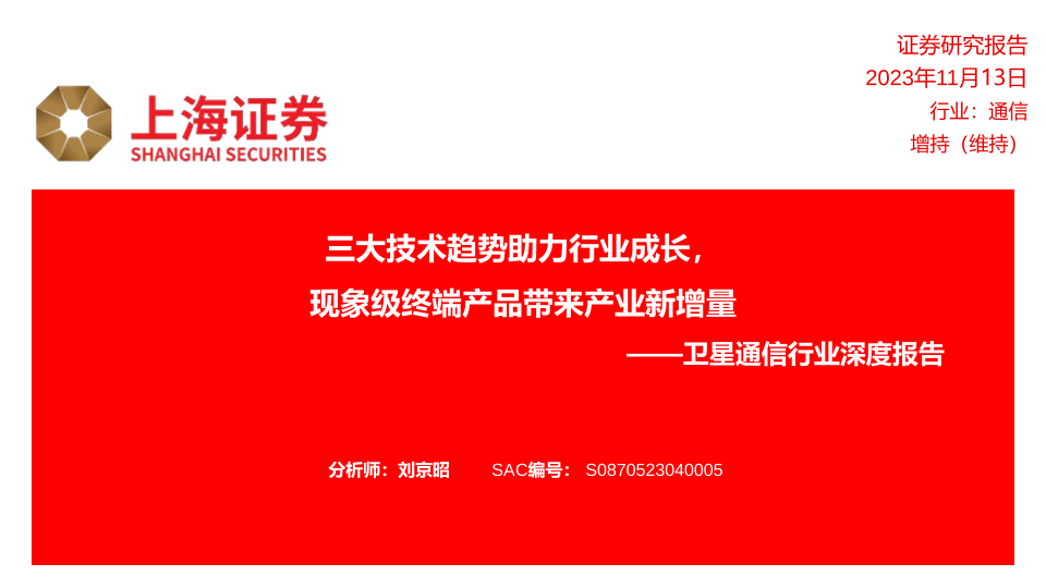 【上海证券】【20231113】卫星通信行业深度报告:三大技术趋势助力行业成长,现象级终端产品带来产业新增量-28页