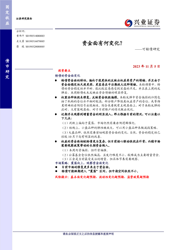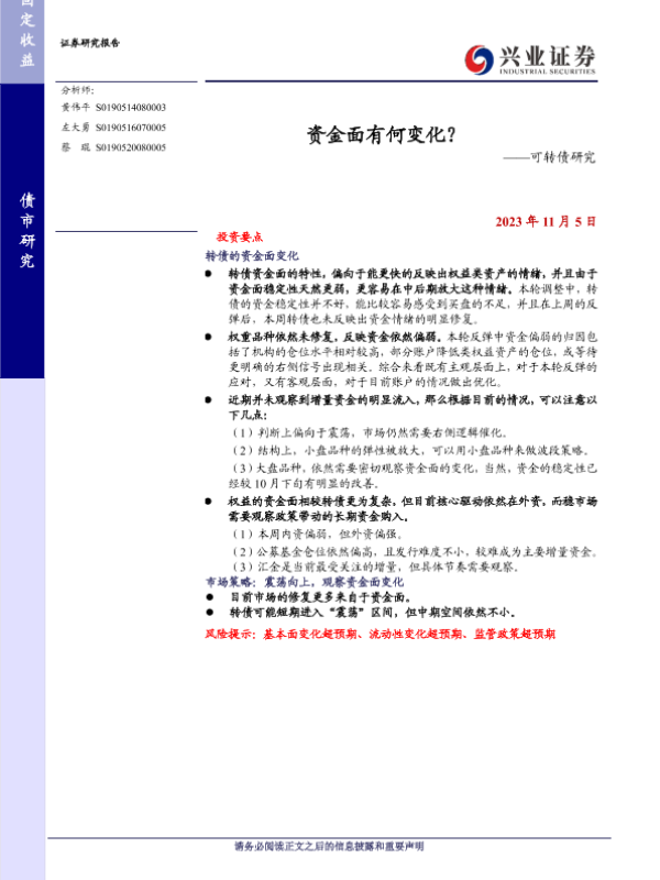 【兴业证券】【20231105】资金面有何变化?——可转债研究-18页