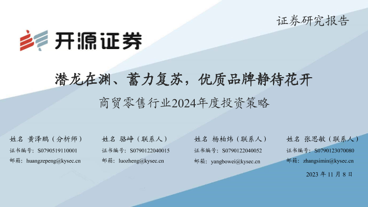 【开源证券】【20231108】商贸零售行业2024年度投资策略:潜龙在渊、蓄力复苏,优质品牌静待花开-49页