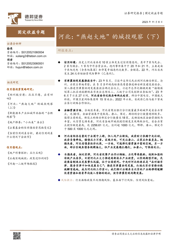 【德邦证券】【20231106】固定收益专题:河北,“燕赵大地”的城投观察(下)-17页