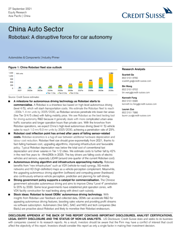 【瑞信】【20210927】瑞信-中国汽车行业-自动驾驶出租车:汽车自动驾驶的颠覆性力量-35页