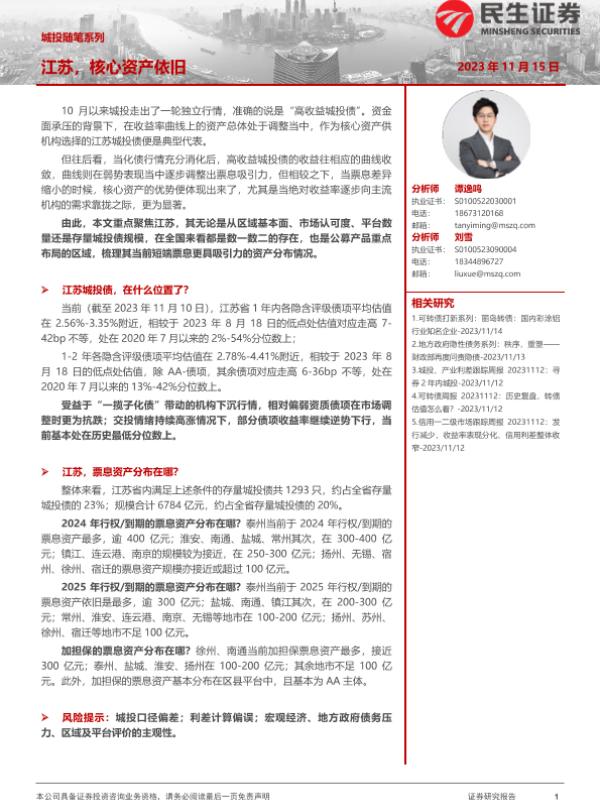 【民生证券】【20231115】城投随笔系列:江苏,核心资产依旧-21页