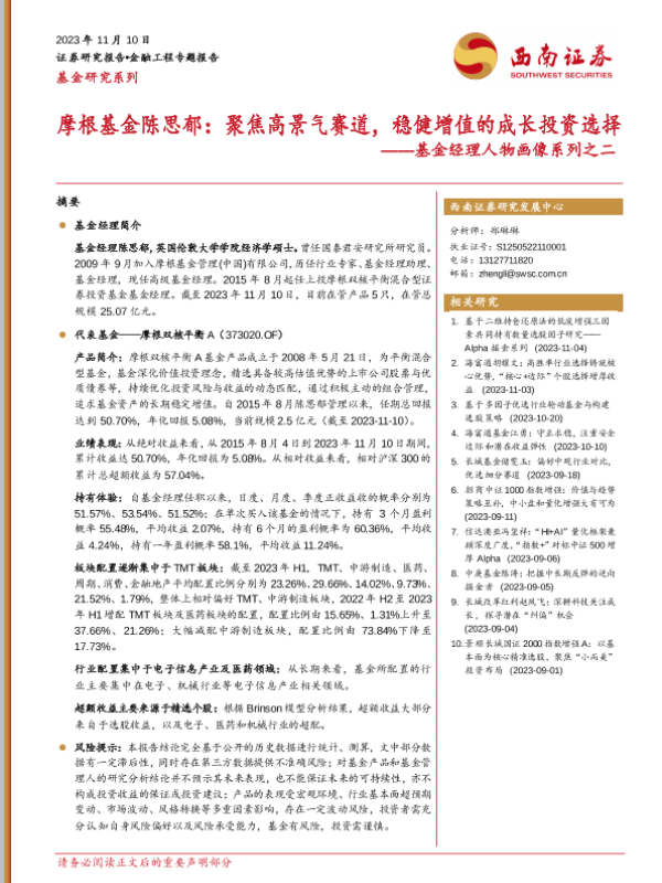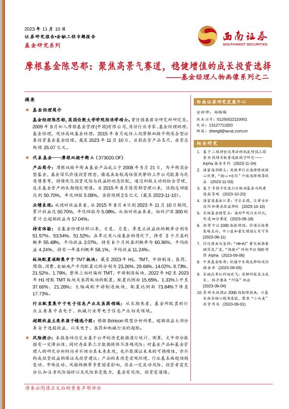 【西南证券】【20231110】基金经理人物画像系列之二:摩根基金陈思郁,聚焦高景气赛道,稳健增值的成长投资选择-22页