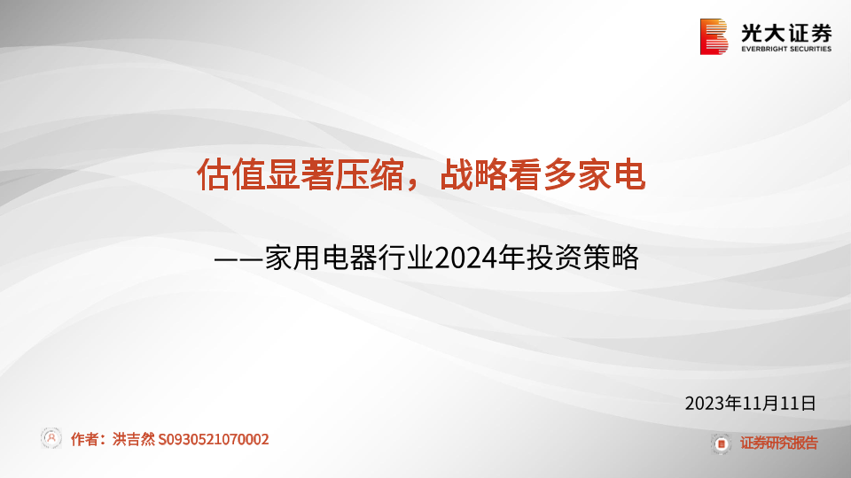【光大证券】【20231111】家用电器行业2024年投资策略:估值显著压缩,战略看多家电-46页