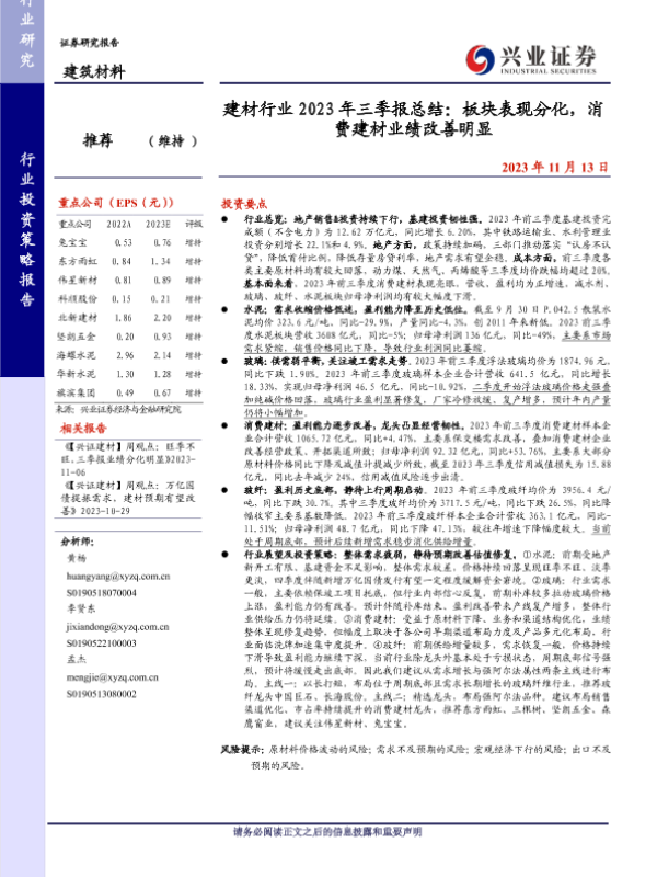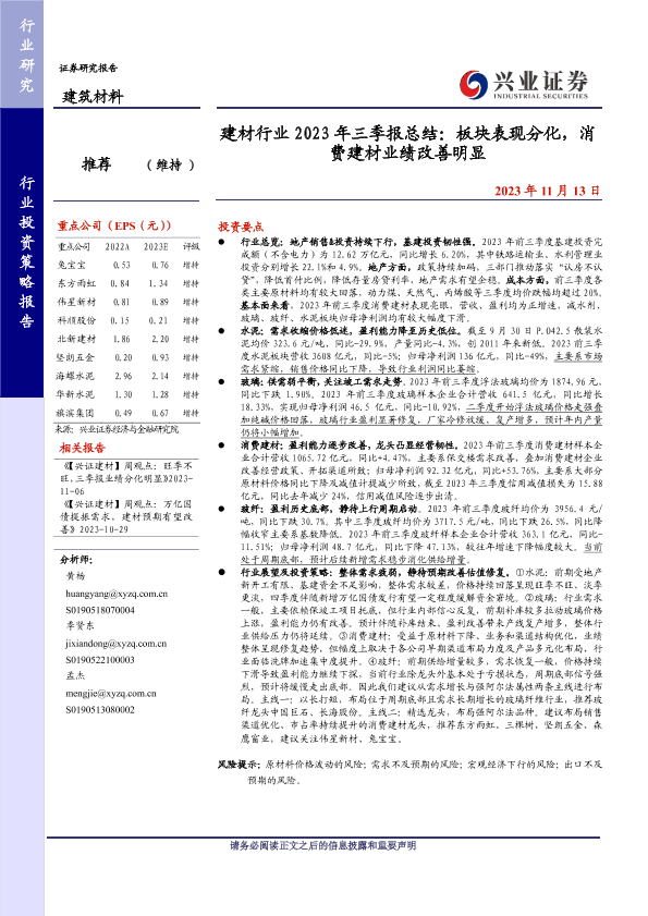 【兴业证券】【20231113】建材行业2023年三季报总结:板块表现分化,消费建材业绩改善明显-34页