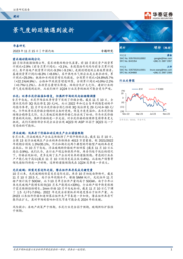 【华泰证券】【20231115】建材行业专题研究:景气度的延续遇到波折-21页