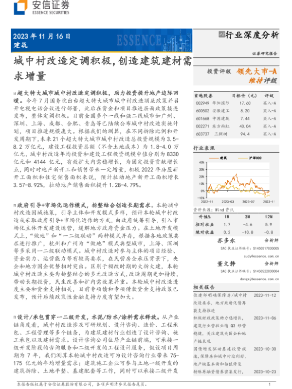 城中村改造 市场需求 建筑行业 投资建议 政策分析