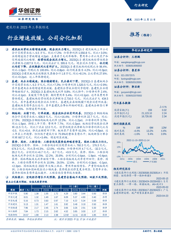 【华创证券】【20231115】建筑行业2023年三季报综述:行业增速放缓,公司分化加剧-22页