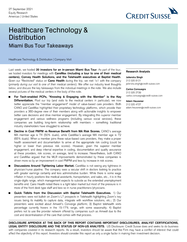 【瑞信】【20210927】瑞信-美股医疗保健行业-迈阿密巴士之旅要点-29页