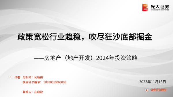 【光大证券】【20231113】房地产(地产开发)行业2024年投资策略:政策宽松行业趋稳,吹尽狂沙底部掘金-51页