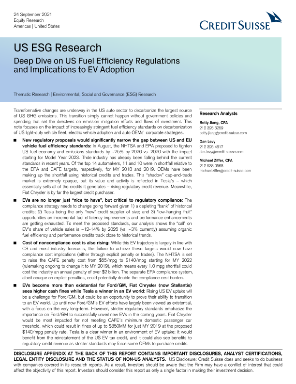 【瑞信】【20210924】瑞信-美股投资策略-ESG研究:深入探讨美国燃油效率法规及其对电动汽车采用的影响-40页