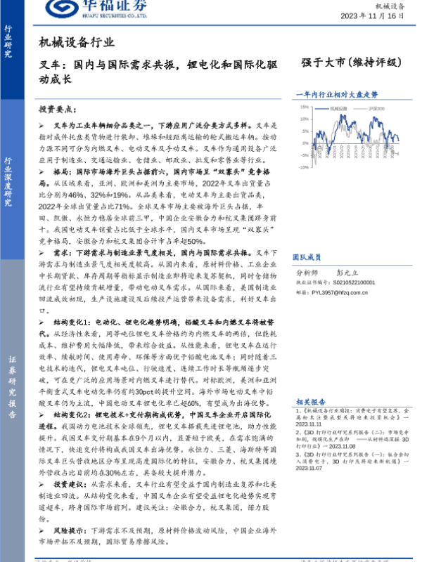 【华福证券】【20231116】机械设备行业:叉车,国内与国际需求共振,锂电化和国际化驱动成长-29页