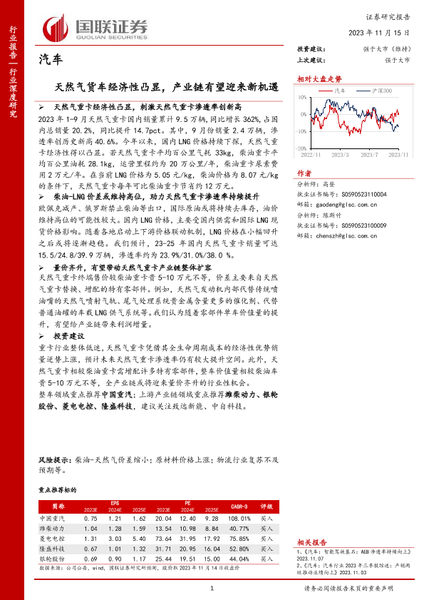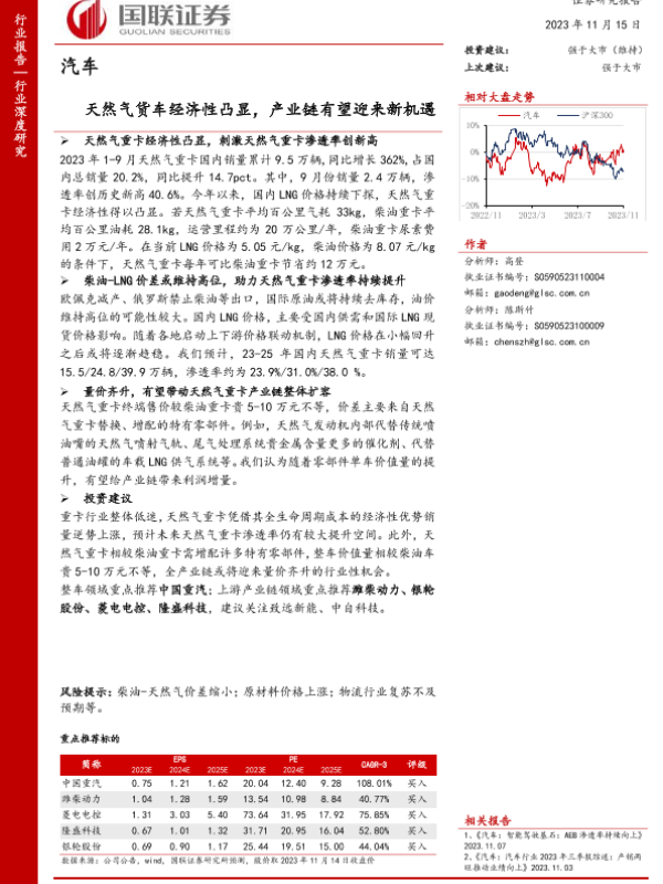 【国联证券】【20231115】汽车行业:天然气货车经济性凸显,产业链有望迎来新机遇-26页