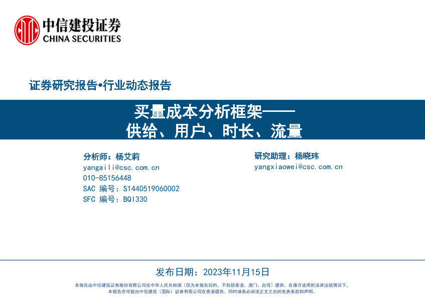 【中信建投证券】【20231115】游戏行业买量成本分析框架:供给、用户、时长、流量-39页