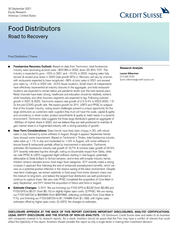【瑞信】【20210930】美股食品行业-食品分销商:复苏之路-21页