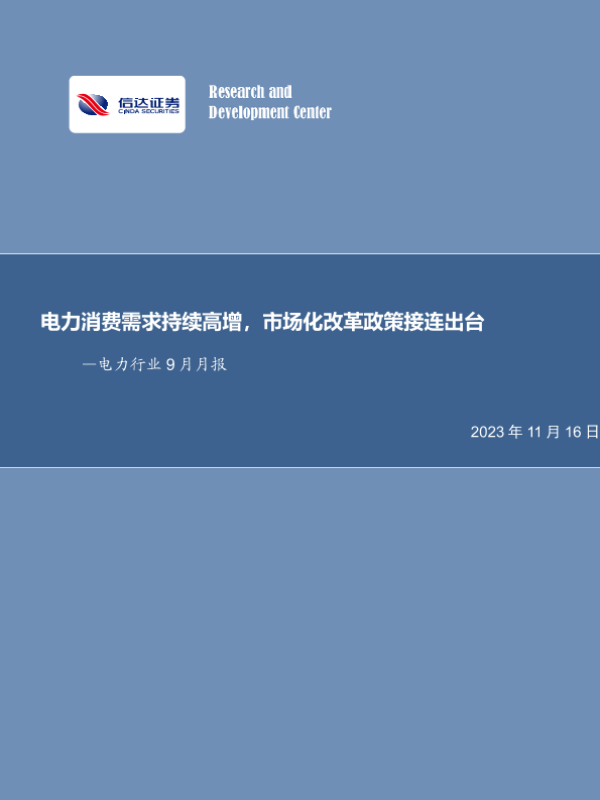 【信达证券】【20231116】电力行业9月月报:电力消费需求持续高增,市场化改革政策接连出台-26页