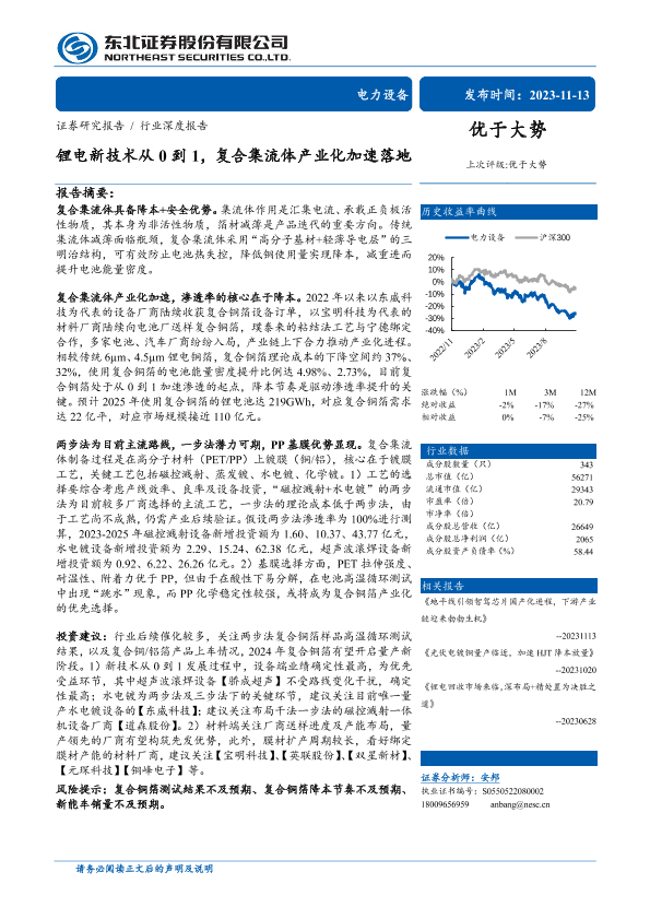 【东北证券】【20231113】锂电新技术从0到1,复合集流体产业化加速落地-31页