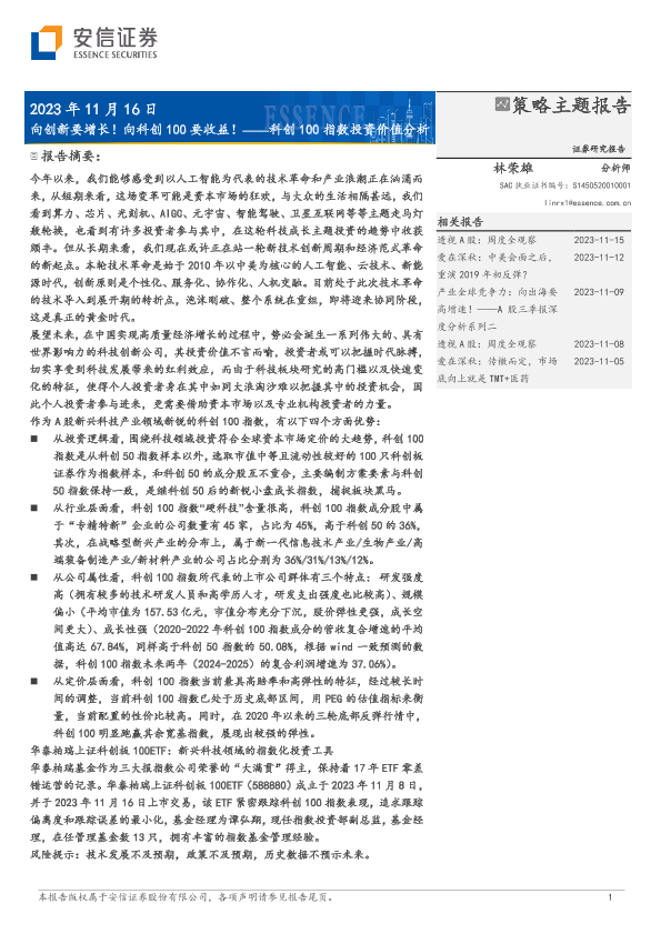 【安信证券】【20231116】科创100指数投资价值分析: 向创新要增长!向科创100要收益!-27页