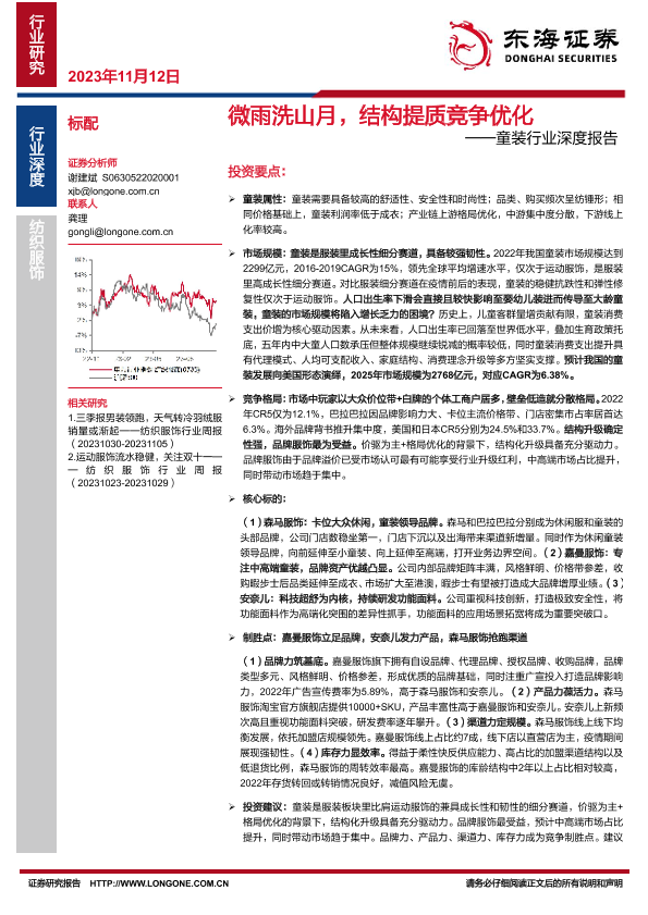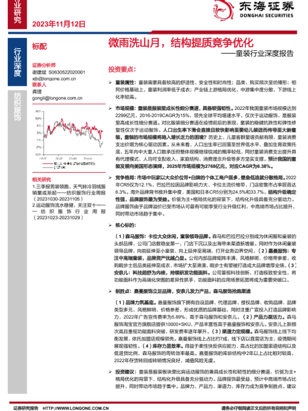 【东海证券】【20231112】微雨洗山月,结构提质竞争优化——童装行业深度报告-29页
