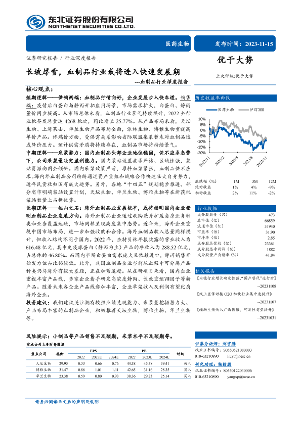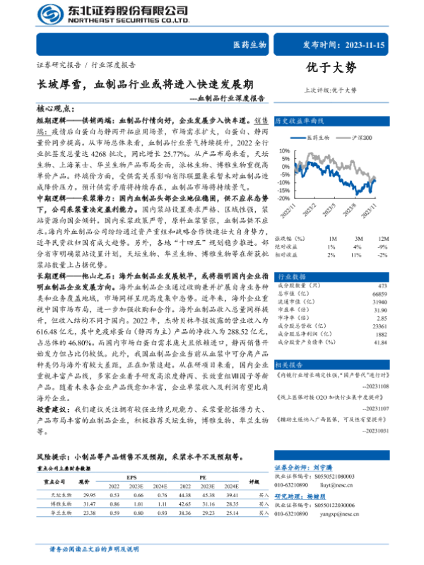 【东北证券】【20231115】长坡厚雪,血制品行业或将进入快速发展期---血制品行业深度报告-53页