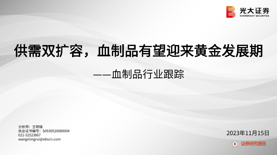 【光大证券】【20231115】血制品行业跟踪:供需双扩容,血制品有望迎来黄金发展期-23页