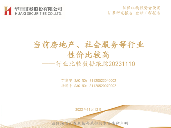 【华西证券】【20231112】行业比较数据跟踪:当前房地产、社会服务等行业性价比较高-22页