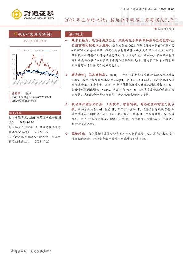 【财通证券】【20231106】计算机行业2023年三季报总结:板块分化明显,复苏拐点已至-18页